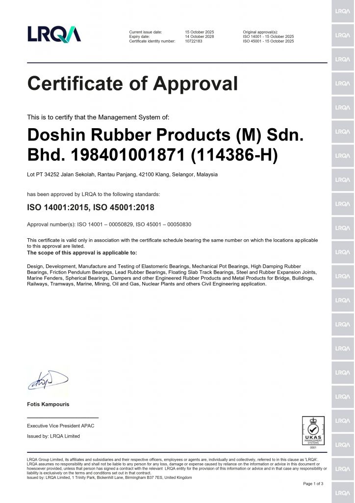 To aid in our quality management system, Doshin Rubber, has set up a quality assurance department and a well-equipped quality control laboratory with state-of-the-art and physical testing equipments.