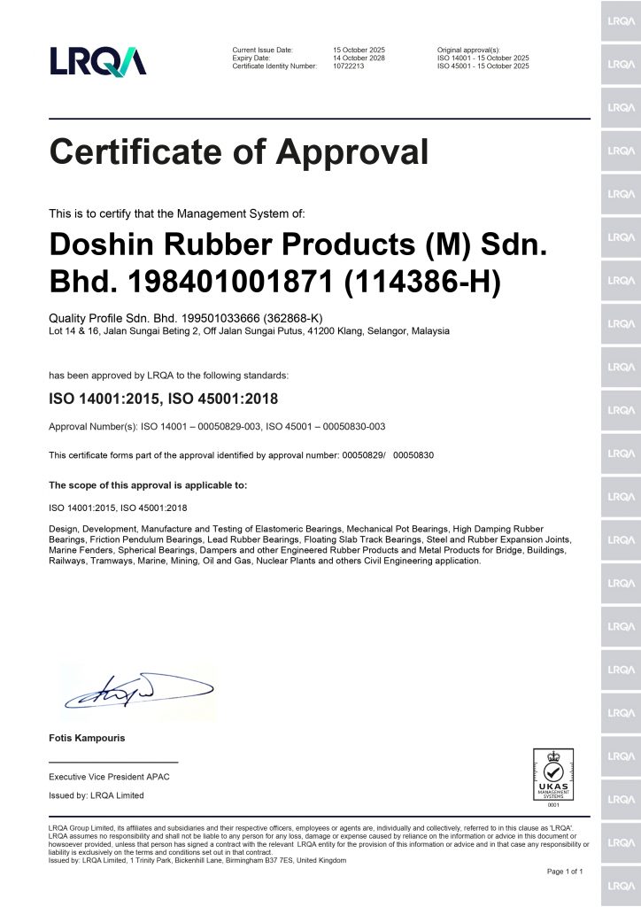 High Damping Rubber Bearings, Friction Pendulum Bearings, Lead Rubber Bearings,Floating Slab Track Bearings, Steel and Rubber Expansion joints, Marine Fenders, Spherical Bearings, Dampers and other Engineered Rubber Products and Metal Products for Bridges,Buildings, Railways, Tramways, Marine, Mining, Oil and Gas, Nuclear Plants and others Civil Engineering application.